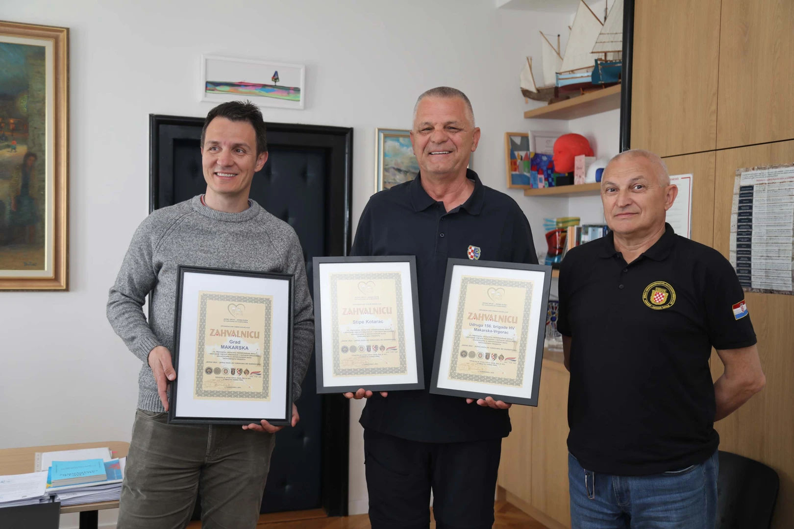 Predstavnici projekta Jedno srce - jedna duša od Vukovara do Dubrovnika jučer su u Gradu Makarskoj uručili zahvalnice gradonačelniku Zoranu Paunoviću, Stipi Kotarcu te Udruzi 156. brigade HV Makarska Vrgorac.