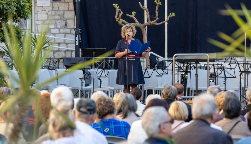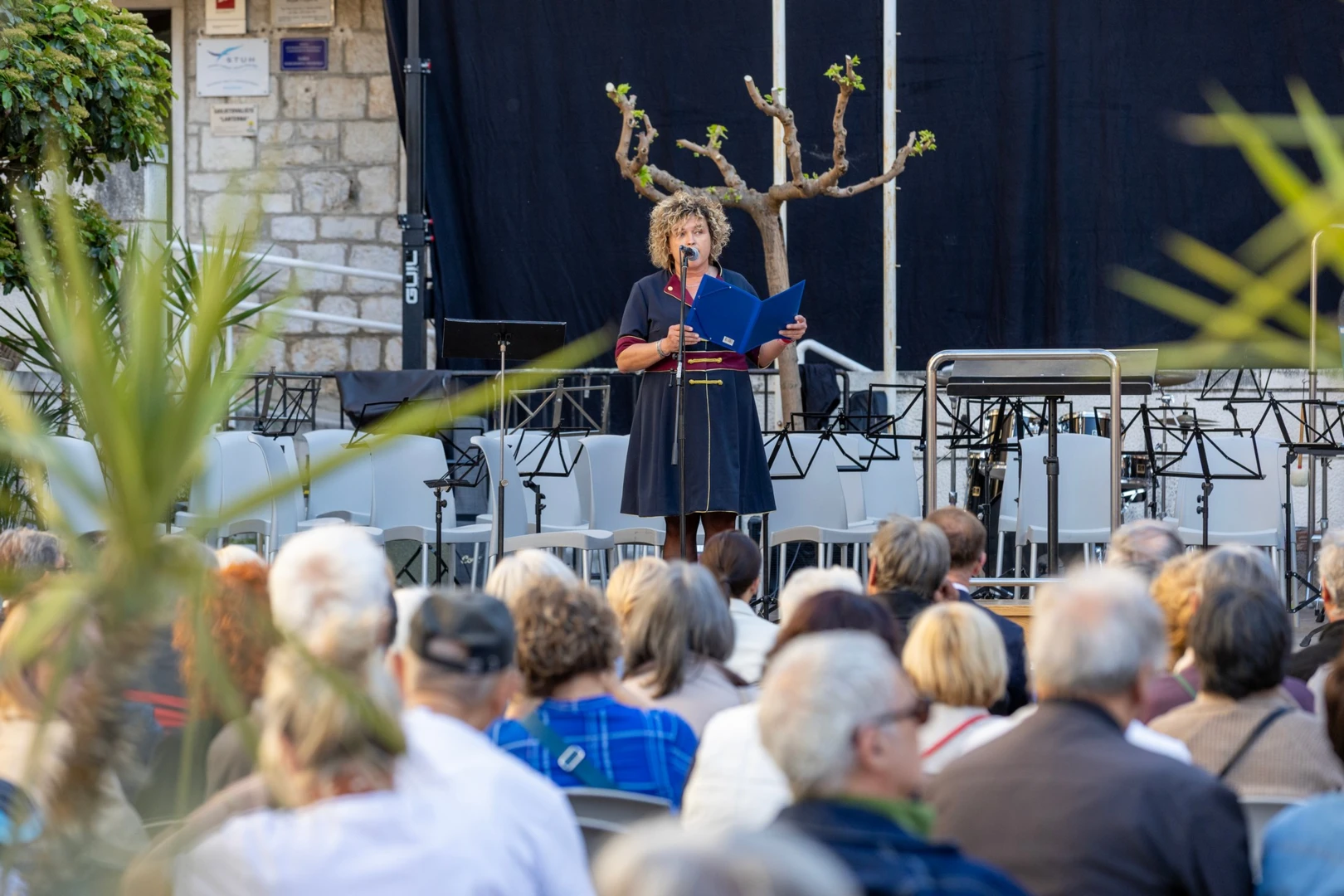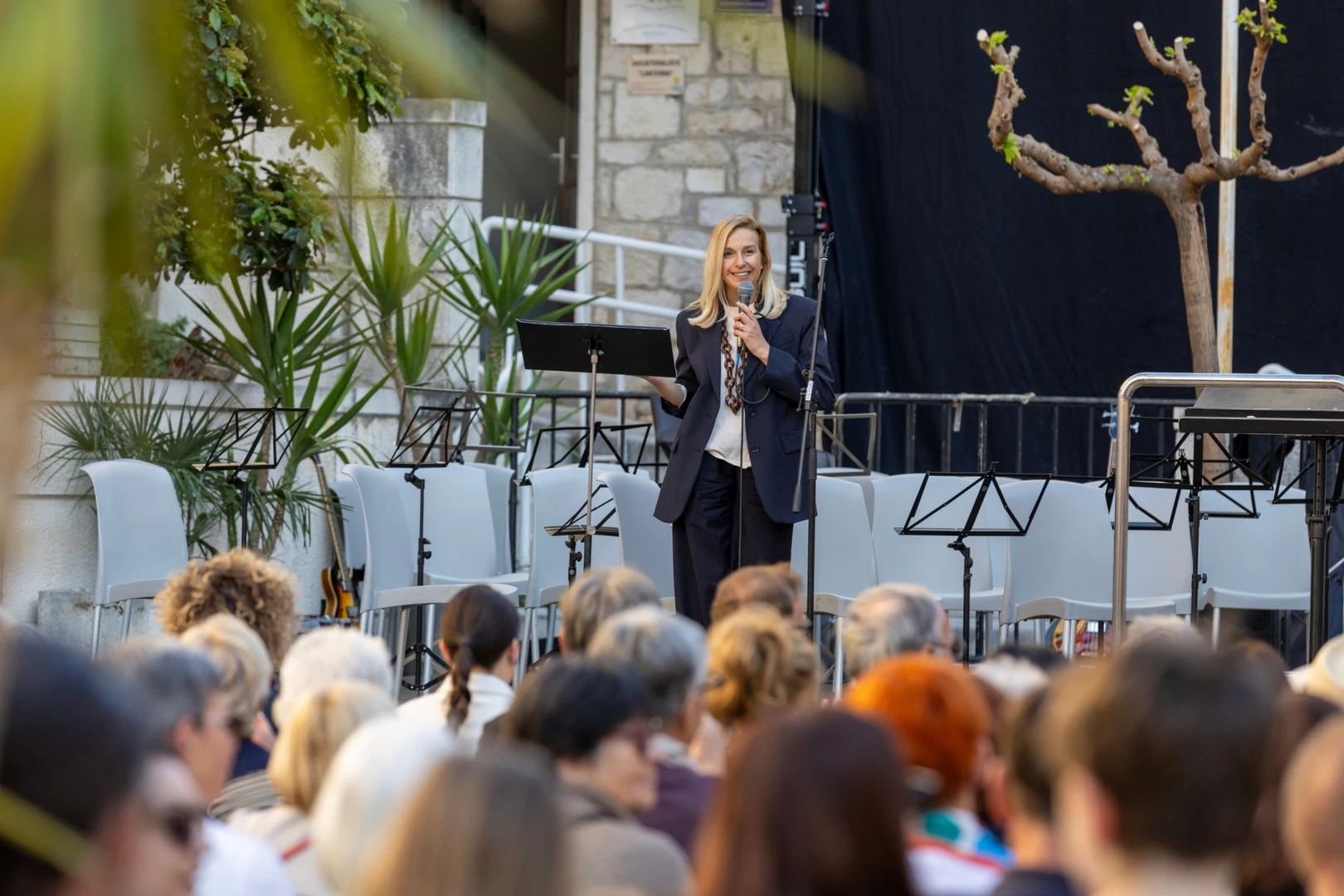 Predsjednica Gradske glazbe Makarska Viki Puharić govorila je o značaju Glazbe i njezinom dugogodišnjem suživotu s Gradom, istaknuvši kako su kroz dugu povijest postali neraskidivo povezani.
